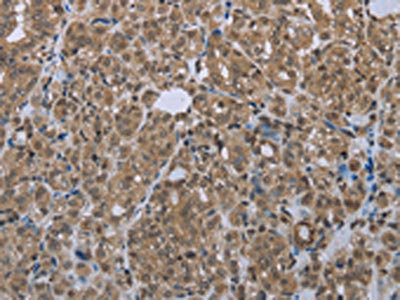 The image is immunohistochemistry of paraffin-embedded Human thyroid cancer tissue using CSB-PA780020(SMAD4 Antibody) at dilution 1/20. (Original magnification: ×200)
