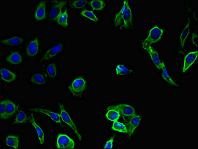 • Immunofluorescent analysis of Hela cells using CSB-PA021869LA01HU at dilution of 1:100 and Alexa Fluor 488-congugated AffiniPure Goat Anti-Rabbit IgG(H+L)