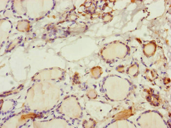 Immunohistochemistry of paraffin-embedded human thyroid tissue using CSB-PA854012ESR2HU at dilution of 1:100
