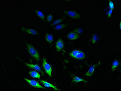 • Immunofluorescent analysis of Hela cells using CSB-PA892358LA01HU at dilution of 1:100 and Alexa Fluor 488-congugated AffiniPure Goat Anti-Rabbit IgG(H+L)