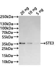 免疫原:Recombinant Saccharomyces cerevisiae (strain ATCC 204508 / S288c) (Baker's yeast) STE3 protein (286-470aa)