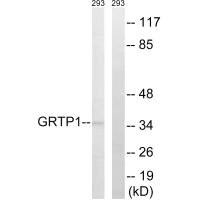 • Western blot analysis of extracts from 293 cells, using GRTP1 antibody.