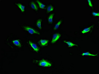 • Immunofluorescent analysis of Hela cells using CSB-PA022921LA01HU at dilution of 1:100 and Alexa Fluor 488-congugated AffiniPure Goat Anti-Rabbit IgG(H+L)