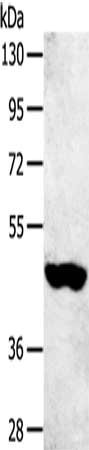 Gel: 8%SDS-PAGE, Lysate: 60 μg, Lane: 231 cells, Primary antibody: CSB-PA158594(SULT2B1 Antibody) at dilution 1/800, Secondary antibody: Goat anti rabbit IgG at 1/8000 dilution, Exposure time: 5 minutes