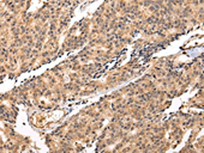 The image on the left is immunohistochemistry of paraffin-embedded Human prostate cancer tissue using CSB-PA187364(SWAP70 Antibody) at dilution 1/20, on the right is treated with fusion protein. (Original magnification: ×200)