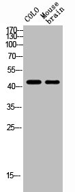 • Western Blot analysis of MOUSE-BRAIN COLO cells using NK-1R Polyclonal Antibody