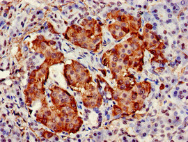 Immunohistochemistry of paraffin-embedded human pancreatic tissue using CSB-PA023129EA01HU at dilution of 1:100