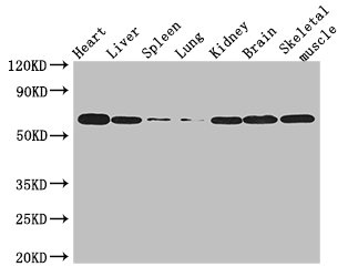 Positive WB detected in: Mouse heart tissue, Mouse liver tissue, Mouse spleen tissue, Mouse lung tissue, Mouse kidney tissue, Mouse brain tissue, Mouse skeletal muscle tissue