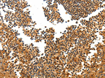 The image on the left is immunohistochemistry of paraffin-embedded Human tonsil tissue using CSB-PA257364(TERT Antibody) at dilution 1/40, on the right is treated with synthetic peptide. (Original magnification: ×200)