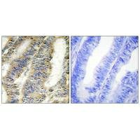 • Immunohistochemistry analysis of paraffin-embedded human colon carcinoma tissue, using TNFA antibody.
