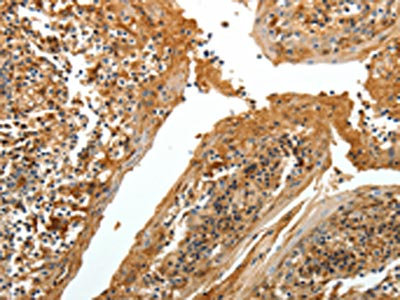 The image on the left is immunohistochemistry of paraffin-embedded Human tonsil tissue using CSB-PA073278(TNR Antibody) at dilution 1/60, on the right is treated with synthetic peptide. (Original magnification: ×200)
