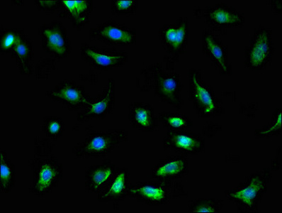 • Immunofluorescent analysis of U251 cells using CSB-PA621879EA01HU at dilution of 1:100 and Alexa Fluor 488-congugated AffiniPure Goat Anti-Rabbit IgG(H+L)