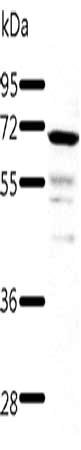 Gel: 8+10+12%SDS-PAGE, Lysate: 60 μg, Lane: Human fetal kidney tissue, Primary antibody: CSB-PA594760(TRAF3 Antibody) at dilution 1/500, Secondary antibody: Goat anti rabbit IgG at 1/8000 dilution, Exposure time: 40 seconds