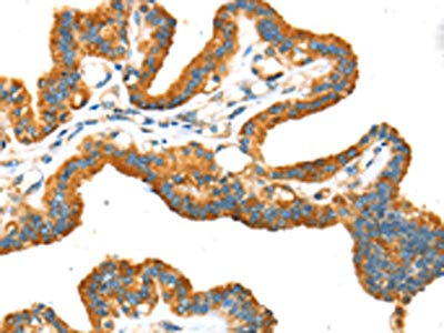 • The image on the left is immunohistochemistry of paraffin-embedded Human thyroid cancer tissue using CSB-PA909076(TRPV5 Antibody) at dilution 1/25, on the right is treated with synthetic peptide. (Original magnification: ×200)