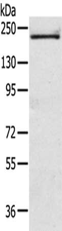 • Gel: 6%SDS-PAGE,Lysate: 40 μg,,Primary antibody: CSB-PA980506(TSC2 Antibody) at dilution 1/200 dilution,Secondary antibody: Goat anti rabbit IgG at 1/8000 dilution,Exposure time: 5 minutes