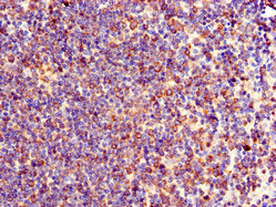 • Immunohistochemistry of paraffin-embedded human lymph node tissue using CSB-PA025362LA01HU at dilution of 1:100