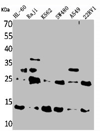 • Western Blot analysis of HL-60 Raji K562 SW480 A549 22RV-1 cells using TRP14 Polyclonal Antibody