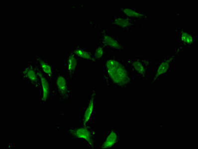 Immunofluorescent analysis of Hela cells using CSB-PA025393LA01HU at dilution of 1:100 and Alexa Fluor 488-congugated AffiniPure Goat Anti-Rabbit IgG(H+L)