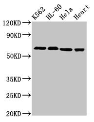 Positive WB detected in: K562 whole cell lysate, HL60 whole cell lysate, Hela whole cell lysate, Rat heart tissue