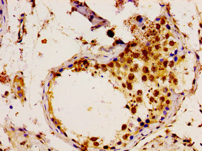Immunohistochemistry of paraffin-embedded human testis tissue using CSB-PA025463LA01HU at dilution of 1:100