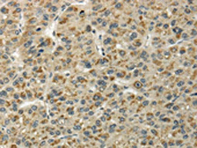 • The image on the left is immunohistochemistry of paraffin-embedded Human liver cancer tissue using CSB-PA560918(UBL4B Antibody) at dilution 1/25, on the right is treated with fusion protein. (Original magnification: ×200)