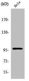 免疫原:Synthesized peptide derived from the Internal region of Human UBF-1.