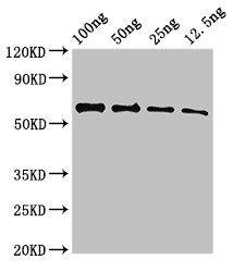 Upon receipt, store at -20°C or -80°C. Avoid repeated freeze.
