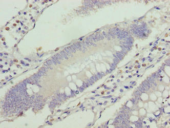 Immunohistochemistry of paraffin-embedded human colon cancer using CSB-PA887108LA01HU at dilution of 1:100