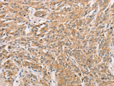 • The image on the left is immunohistochemistry of paraffin-embedded Human thyroid cancer tissue using CSB-PA991992(WNT11 Antibody) at dilution 1/20, on the right is treated with fusion protein. (Original magnification: ×200)