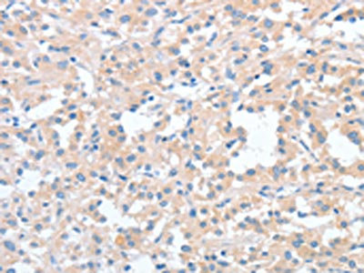The image is immunohistochemistry of paraffin-embedded Human thyroid cancer tissue using CSB-PA796998(WNT3A Antibody) at dilution 1/40. (Original magnification: ×200)