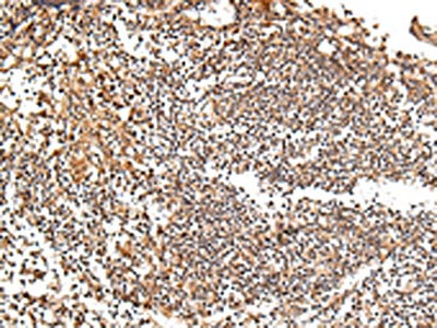 • The image on the left is immunohistochemistry of paraffin-embedded Human tonsil tissue using CSB-PA093573(XKR7 Antibody) at dilution 1/20, on the right is treated with synthetic peptide. (Original magnification: ×200)
