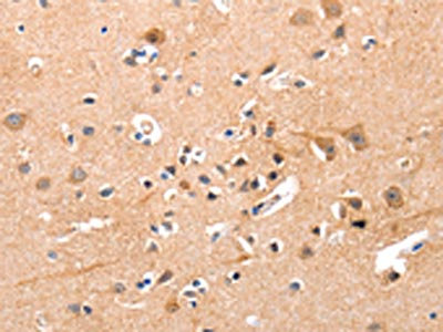 • The image on the left is immunohistochemistry of paraffin-embedded Human brain tissue using CSB-PA066436(YWHAG Antibody) at dilution 1/50, on the right is treated with synthetic peptide. (Original magnification: ×200)