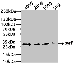 免疫原:Recombinant Escherichia coli (strain K12 / MC4100 / BW2952) pyrF protein (1-245aa)
