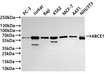 2' 5' oligoadenylate binding protein antibody; 2''-5''-oligoadenylate-binding protein antibody; 2'5' oligoadenylate binding protein antibody; ABC 38 antibody; ABC38 antibody; ABCE 1 antibody; ABCE1 antibody; ABCE1_HUMAN antibody; ATP binding cassette sub family E (OABP) member 1 antibody; ATP binding cassette sub family E member 1 antibody; ATP-binding cassette sub-family E member 1 antibody; HuHP 68 antibody; HuHP68 antibody; OABP antibody; Ribonuclease 4 inhibitor antibody; Ribonuclease L (2' 5' oligoisoadenylate synthetase dependent) inhibitor antibody; Ribonuclease L (2'5' oligoisoadenylate synthetase dependent) inhibitor antibody; Ribonuclease L inhibitor antibody; RLI antibody; RNase L inhibitor antibody; RNASEL1 antibody; RNASELI antibody; RNS 4I antibody; RNS4I antibody