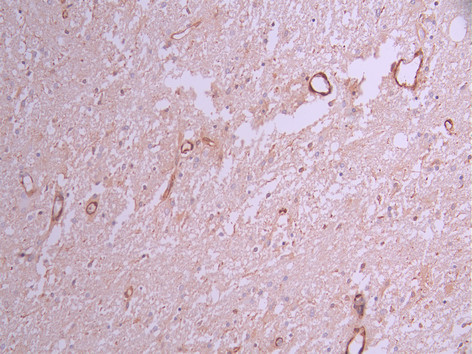 • IHC image of CSB-RA163563A0HU diluted at 1:100 and staining in paraffin-embedded human glioma cancer performed on a Leica BondTM system. After dewaxing and hydration, antigen retrieval was mediated by high pressure in a citrate buffer (pH 6.0). Section was blocked with 10% normal goat serum 30min at RT. Then primary antibody (1% BSA) was incubated at 4°C overnight. The primary is detected by a Goat anti-rabbit polymer IgG labeled by HRP and visualized using 0.05% DAB.