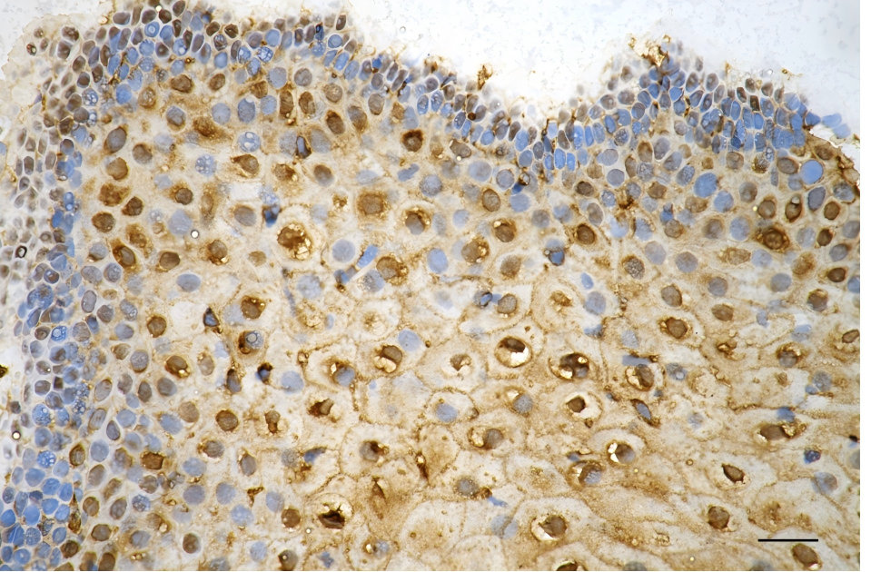 Immunohistochemistry was performed on paraffin-embedded human endometrial carcinoma using annexin A1 antibody. Antigen retrieval was done in sodium citrate buffer (pH 6.0). DAB was used for detection, with hematoxylin counterstaining. Images were acquired using a Nikon Ci-L Plus microscope (40× objective). Scale bar: 25 μm.