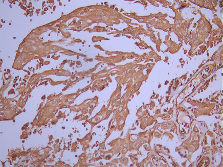 • IHC image of CSB-RA699080A0HU diluted at 1:100 and staining in paraffin-embedded human cervical cancer performed on a Leica BondTM system. After dewaxing and hydration, antigen retrieval was mediated by high pressure in a citrate buffer (pH 6.0). Section was blocked with 10% normal goat serum 30min at RT. Then primary antibody (1% BSA) was incubated at 4°C overnight. The primary is detected by a Goat anti-rabbit polymer IgG labeled by HRP and visualized using 0.05% DAB.