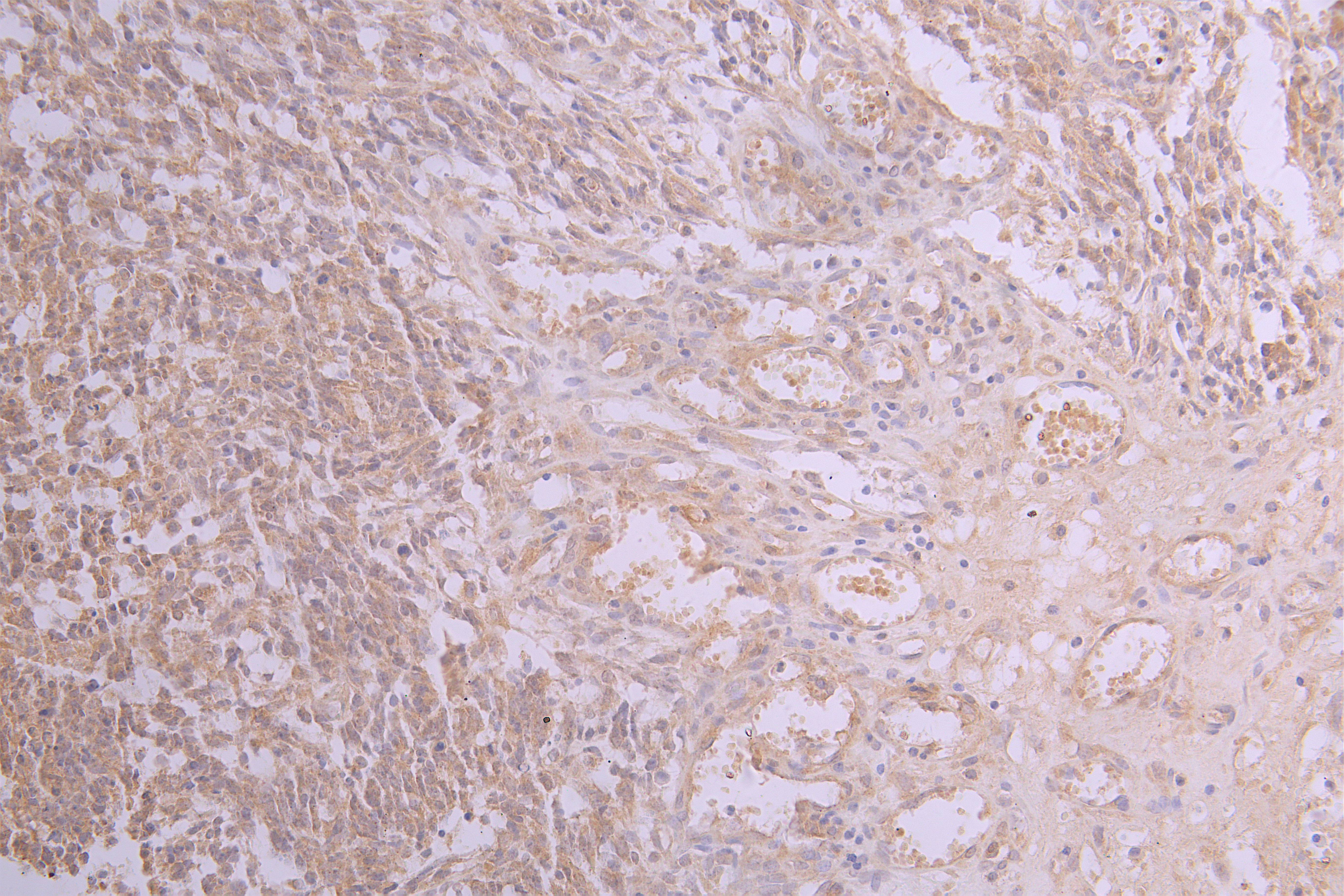 • IHC image of CSB-RA001950MA2HU diluted at 1:50 and staining in paraffin-embedded human glioma cancer performed on a Leica BondTM system. After dewaxing and hydration, antigen retrieval was mediated by high pressure in a citrate buffer (pH 6.0). Section was blocked with 10% normal goat serum 30min at RT. Then primary antibody (1% BSA) was incubated at 4°C overnight. The primary is detected by a Goat anti-human polymer IgG labeled by HRP and visualized using 0.05% DAB.