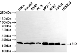 Apoptic death agonist antibody; Apoptotic death agonist BID antibody; BH3 interacting domain death agonist antibody; BH3 interacting domain death agonist p11 antibody; BH3 interacting domain death agonist p13 antibody; BH3 interacting domain death agonist p15 antibody; BH3-interacting domain death agonist p11 antibody; BID antibody; BID isoform ES(1b) antibody; BID isoform L(2) antibody; BID isoform Si6 antibody; BID_HUMAN antibody; Desmocollin type 4 antibody; FP497 antibody; Human BID coding sequence antibody; MGC15319 antibody; MGC42355 antibody; p11 BID antibody; p13 BID antibody; p15 BID antibody; p22 BID antibody