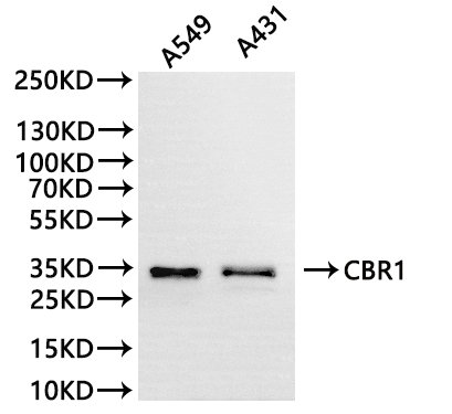 Positive WB detected in: A549 whole cell lysate(30μg), A431 whole cell lysate(30μg)