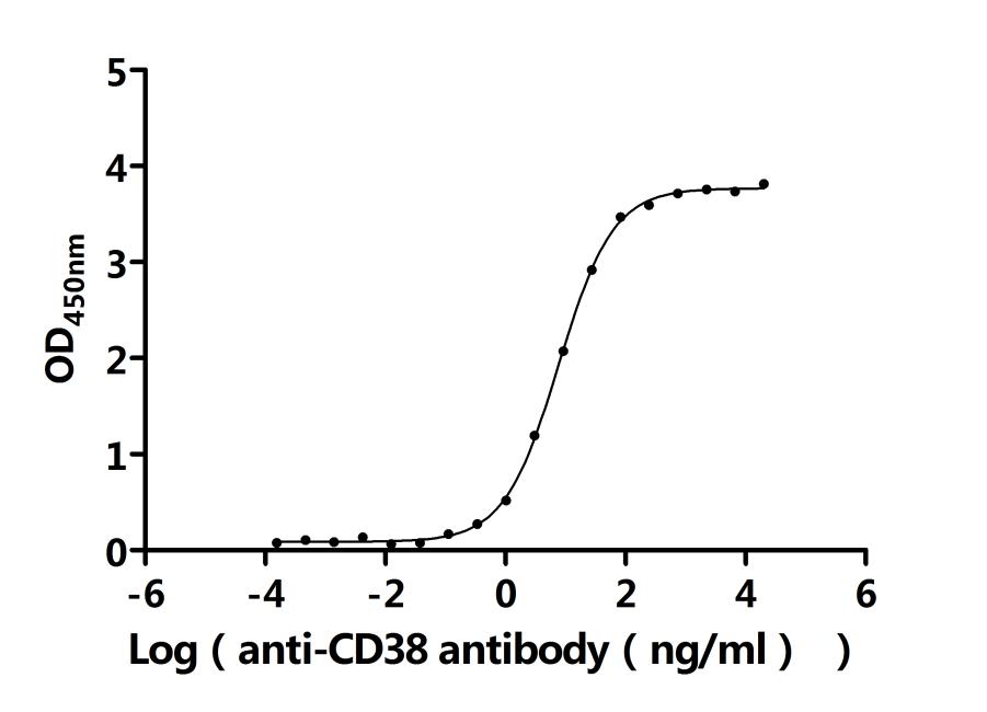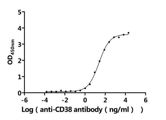 Activity: Measured by its binding ability in a functional ELISA.Immobilized Human CD38(CSB-MP004929HUc7) at 2 μg/mL can bind Anti-CD38 recombinant antibody. The EC50 is 7.073-8.315 ng/mL.