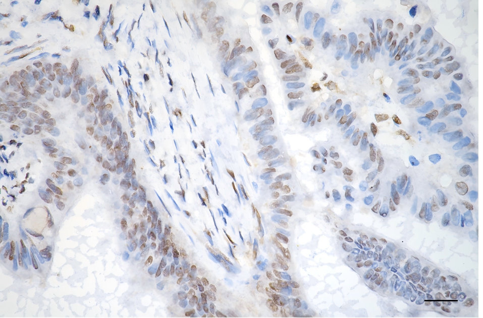 • Immunohistochemistry was performed on paraffin-embedded human pancreatic adenocarcinoma using CIRBP antibody. Antigen retrieval was done in sodium citrate buffer (pH 6.0). DAB was used for detection, with hematoxylin counterstaining. Images were acquired using a Nikon Ci-L Plus microscope (40× objective). Scale bar: 25 μm.