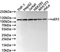 EEF 2 antibody; Eef2 antibody; EF-2 antibody; EF2 antibody; EF2_HUMAN antibody; Elongation factor 2 antibody; Eukaryotic translation elongation factor 2 antibody; Polypeptidyl tRNA translocase antibody; SCA26 antibody