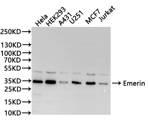 別名:EDMD antibody; Emd antibody; EMD_HUMAN antibody; Emerin antibody; Emery Dreifuss muscular dystrophy antibody; STA antibody