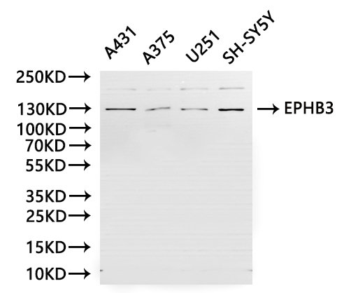 , Positive WB detected in:A431 whole cell lysate(30μg), A375 whole cell lysate(30μg), U251 whole cell lysate(30μg), SH-SY5Y whole cell lysate(30μg)