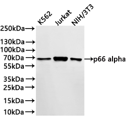 Positive WB detected in:K562 whole cell lysate(30μg), Jurkat whole cell lysate(30μg), NIH/3T3 whole cell lysate(30μg)