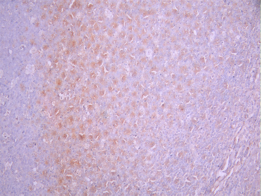 IHC image of CSB-RA194560A0HU diluted at 1:100 and staining in paraffin-embedded human lymph node tissue performed on a Leica BondTM system. After dewaxing and hydration, antigen retrieval was mediated by high pressure in a citrate buffer (pH 6.0). Section was blocked with 10% normal goat serum 30min at RT. Then primary antibody (1% BSA) was incubated at 4°C overnight. The primary is detected by a Goat anti-rabbit polymer IgG labeled by HRP and visualized using 0.05% DAB.