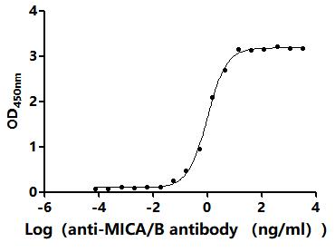 Activity: Measured by its binding ability in a functional ELISA.Immobilized Human MICB(CSB-MP5608HU) at 2 μg/mL can bind Anti-MICA/B recombinant antibody. The EC50 is 0.9180-1.062 ng/mL. -