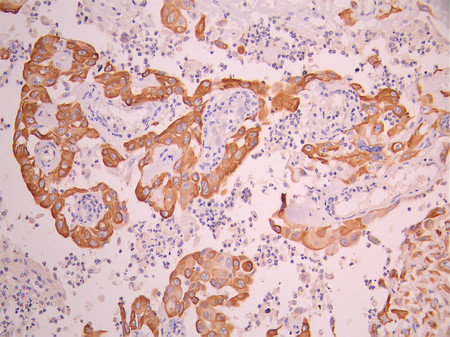 • IHC image of CSB-RA957044A0HU diluted at 1:100 and staining in paraffin-embedded human cervical cancer performed on a Leica BondTM system. After dewaxing and hydration, antigen retrieval was mediated by high pressure in a citrate buffer (pH 6.0). Section was blocked with 10% normal goat serum 30min at RT. Then primary antibody (1% BSA) was incubated at 4°C overnight. The primary is detected by a Goat anti-rabbit polymer IgG labeled by HRP and visualized using 0.05% DAB.