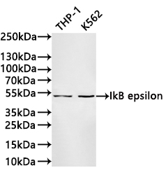 Positive WB detected in: THP-1 whole cell lysate(30μg), K562 whole cell lysate(30μg)